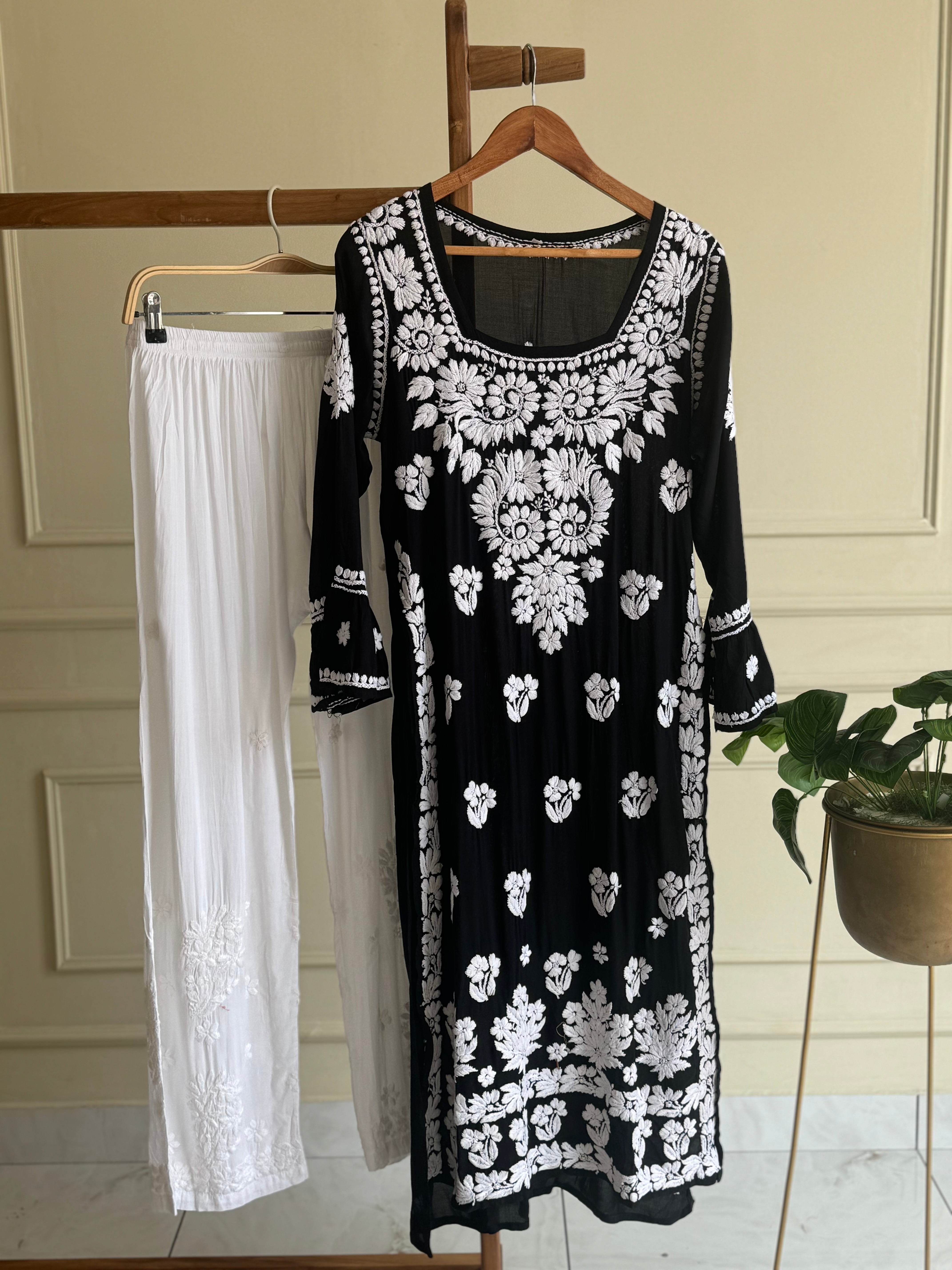 Type: Stitched kurti only Fabric: Modal Shirt: Modal fabric with intricate Chikankari embroidery  Each Chikankari piece is crafted with care and expertise, showcasing the timeless elegance of traditional embroidery. Handmade by skilled artisans, these designs exude beauty and sophistication. Dispatch Details:Website showcases only ready stock items, ensuring you can easily find products that are available for immediate dispatch. For items that are out of stock, don’t worry! You can pre-book them by directly messaging us, and we’ll make sure to get your order processed. Please note that these pre-ordered pieces will be dispatched within 15-18 days. Additionally, we offer color customization options for many of our products, allowing you to tailor your purchase to your personal preference. Shop with confidence, knowing that we’re committed to delivering the best products with clear timelines and personalized choices!