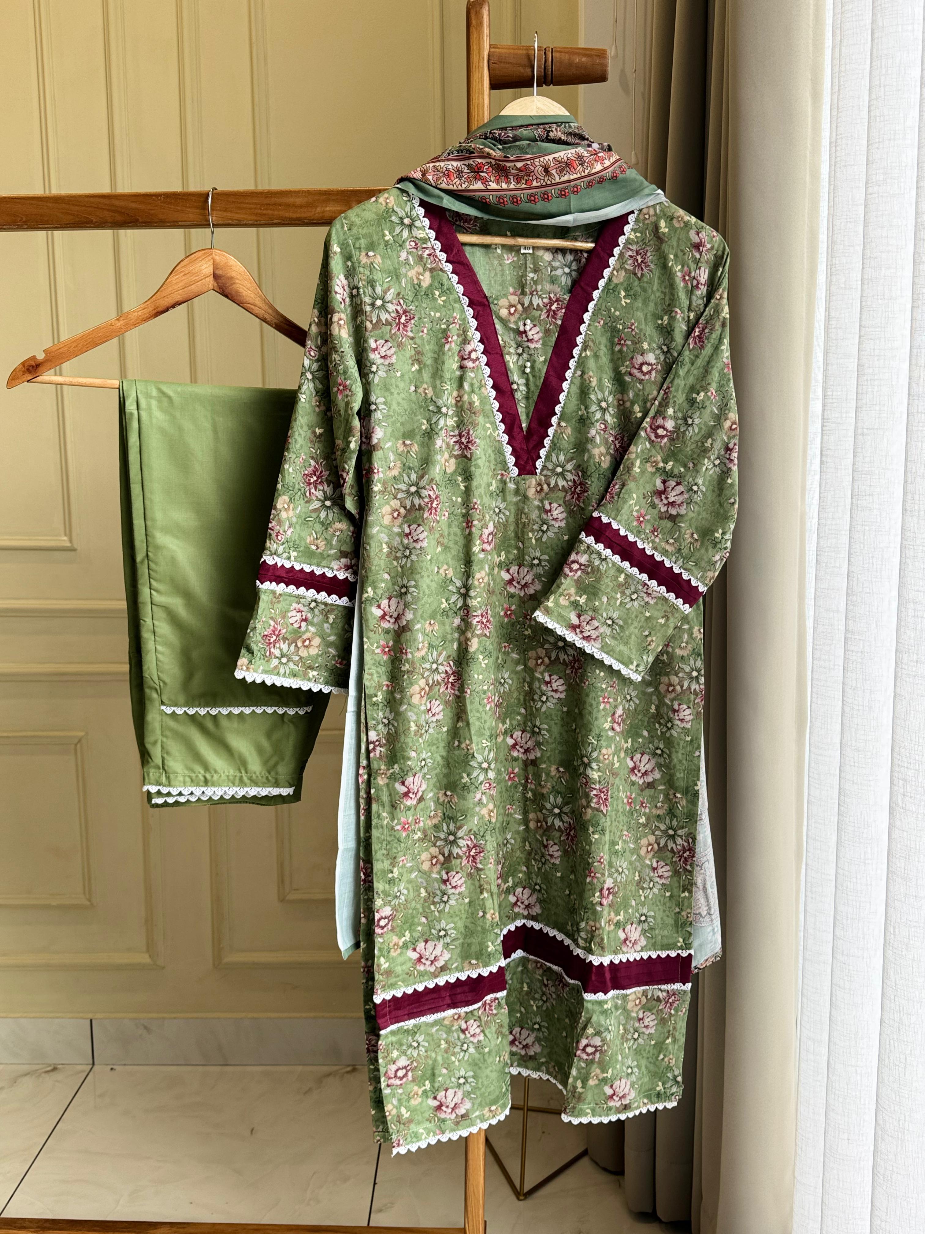 Type: Stitched/ ready  Fabric: Cotton  Bottom: Cotton  Dupatta: chiffon Dupata Fit: Casual wear Wash Care: Gentle wash Work: Embroidery and prints Sizes : Large, xl, xxl