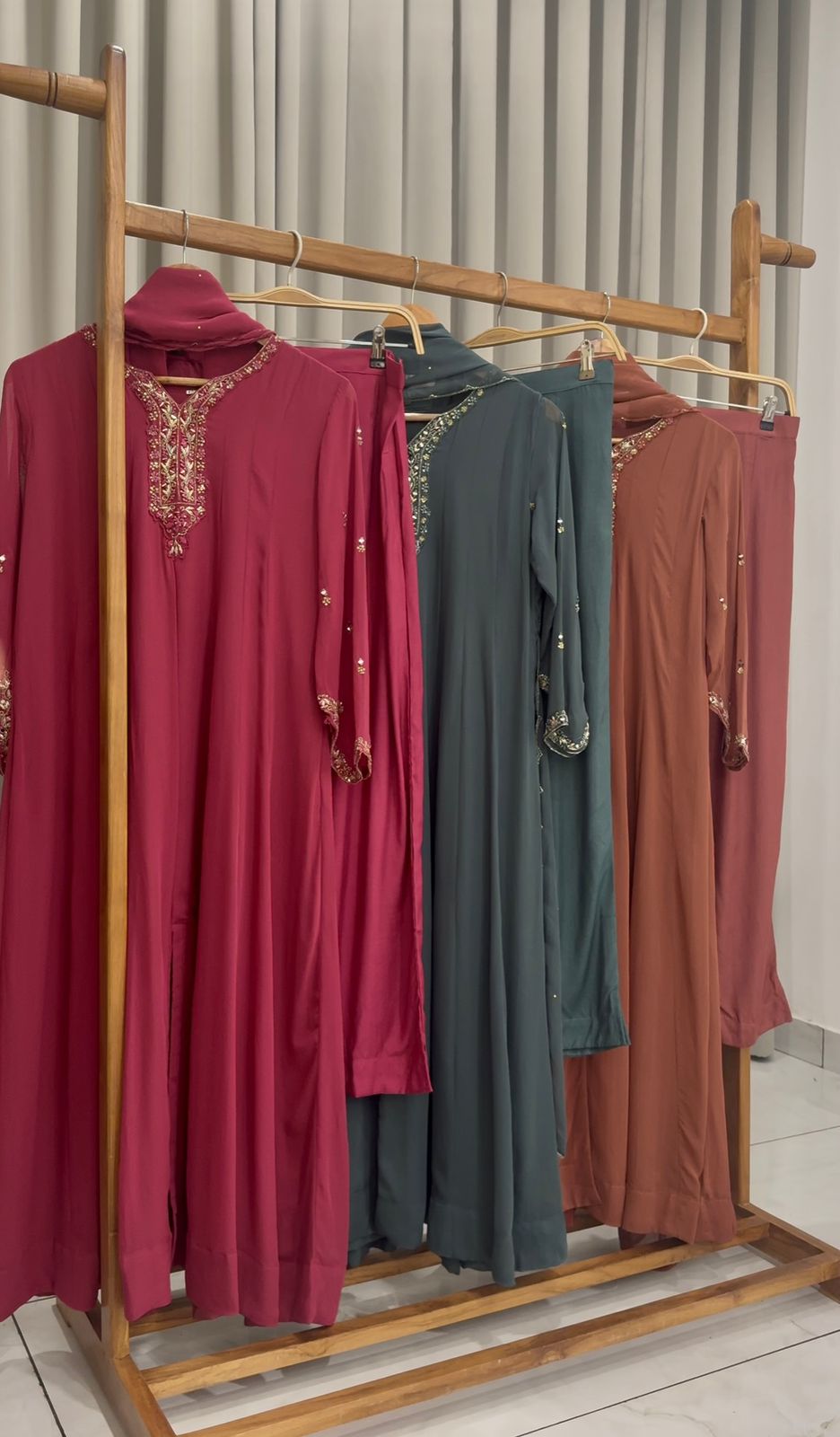 Type :stitched Fabric: Soft Georgette Pure scalloped DupattaChinnon Shirt Length: 50" Sleeve length: 19"   Sizes- Medium, Large,XL, XXL,
