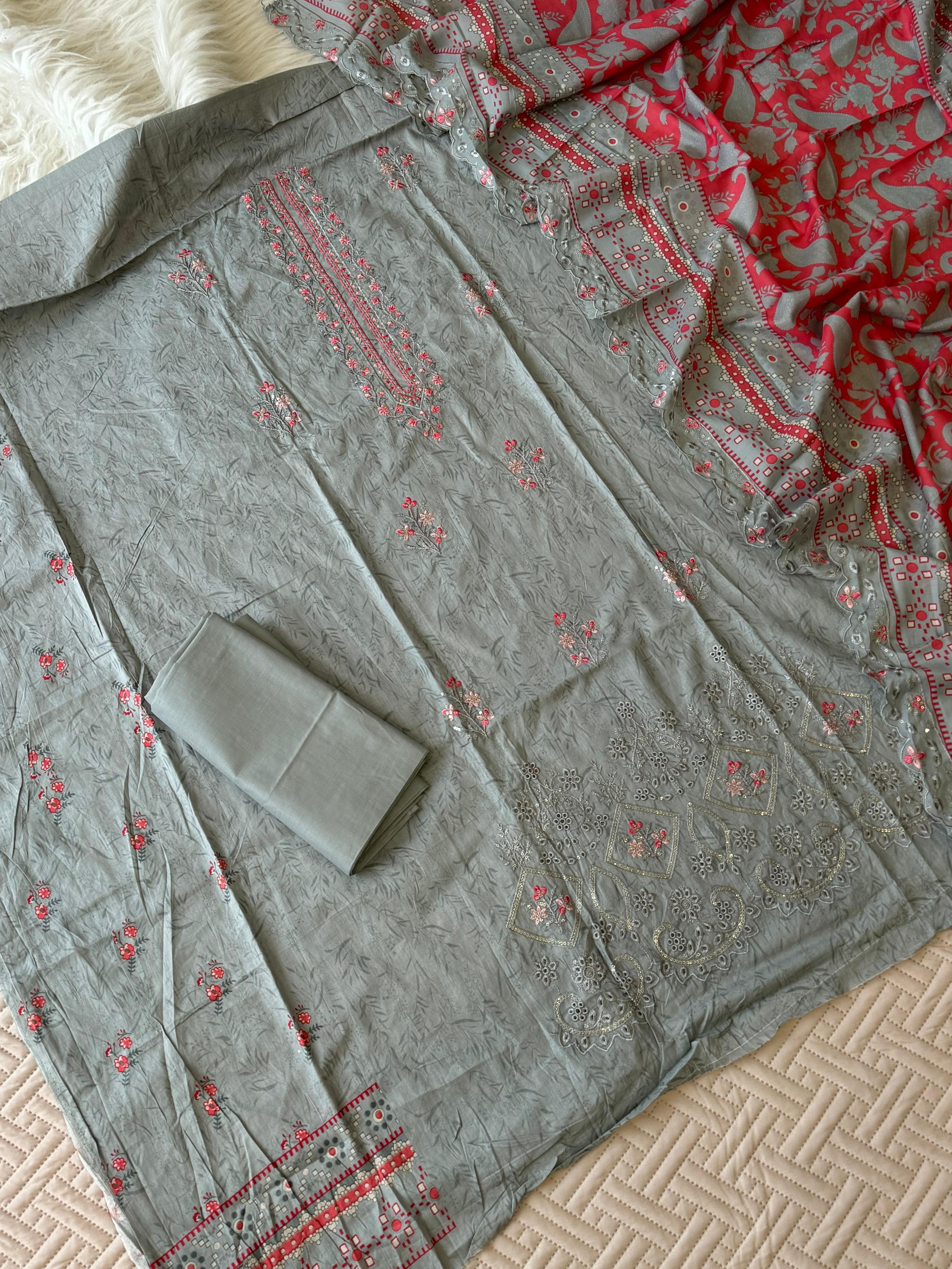 Fully embroidered Cotton suit Ft. Embroidered Dupatta-1262