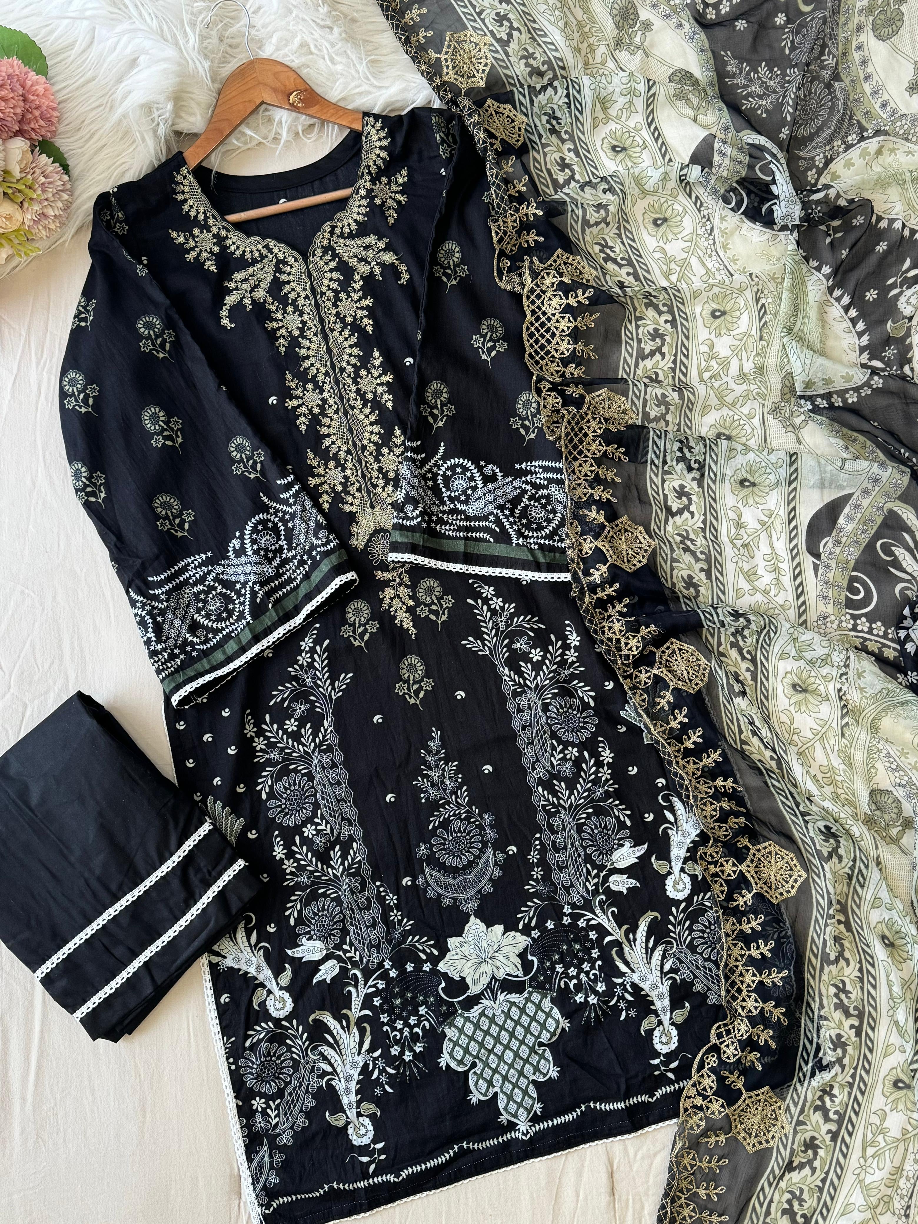 Type: Unstitched (can be stitched upto3xl) Fabric: Cotton Bottom: Cotton  Dupatta: Chiffon Dupata /Cotton Dupata Fit: Casual wear Wash Care: Gentle wash Work: Embroidery, prints and patch works