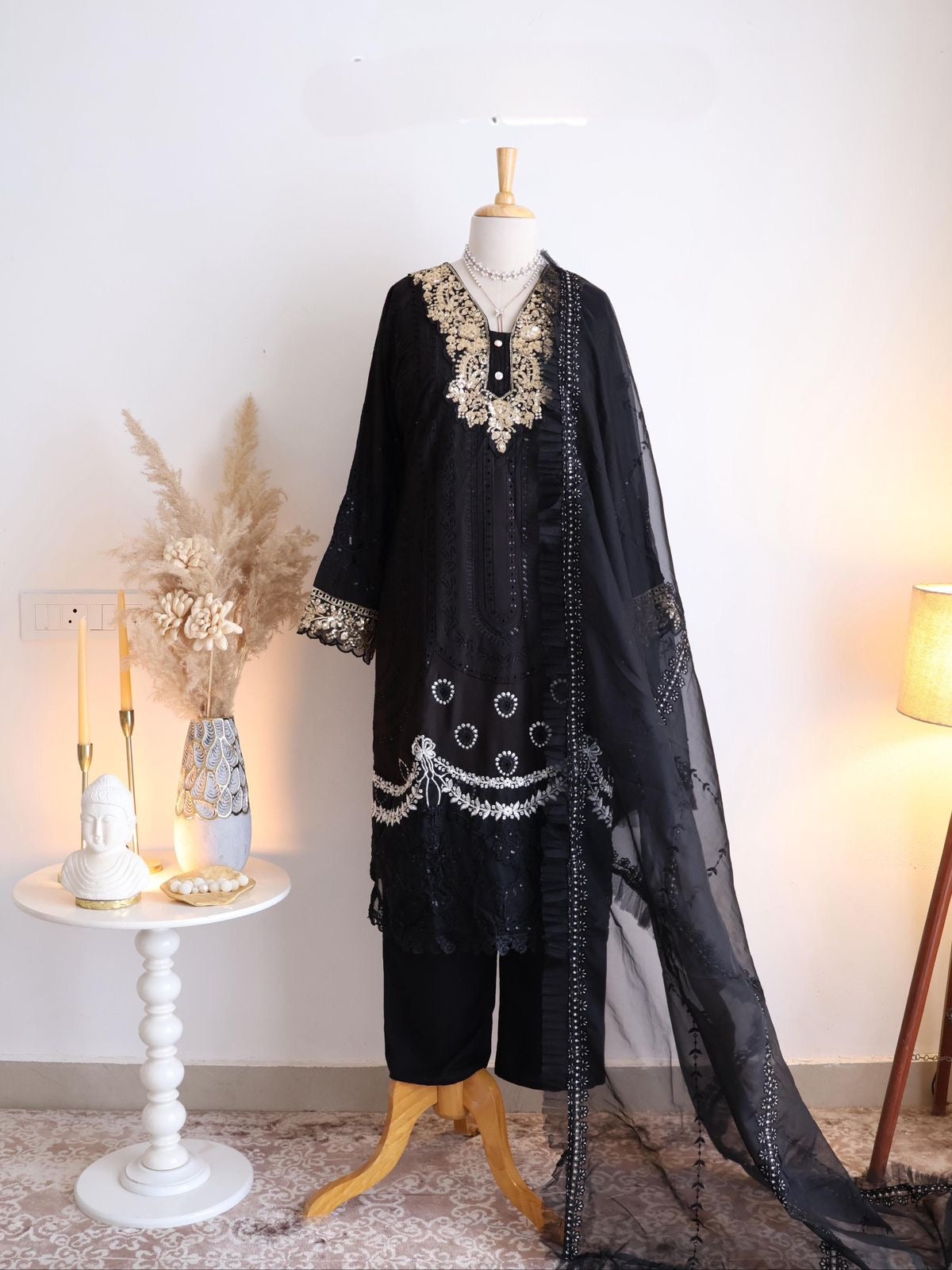 Designer Stylish Embroidered Tunic with hand Work and Embroidered in sleeves and stylish neck pattern with glamorous gorgeous organza dupatta