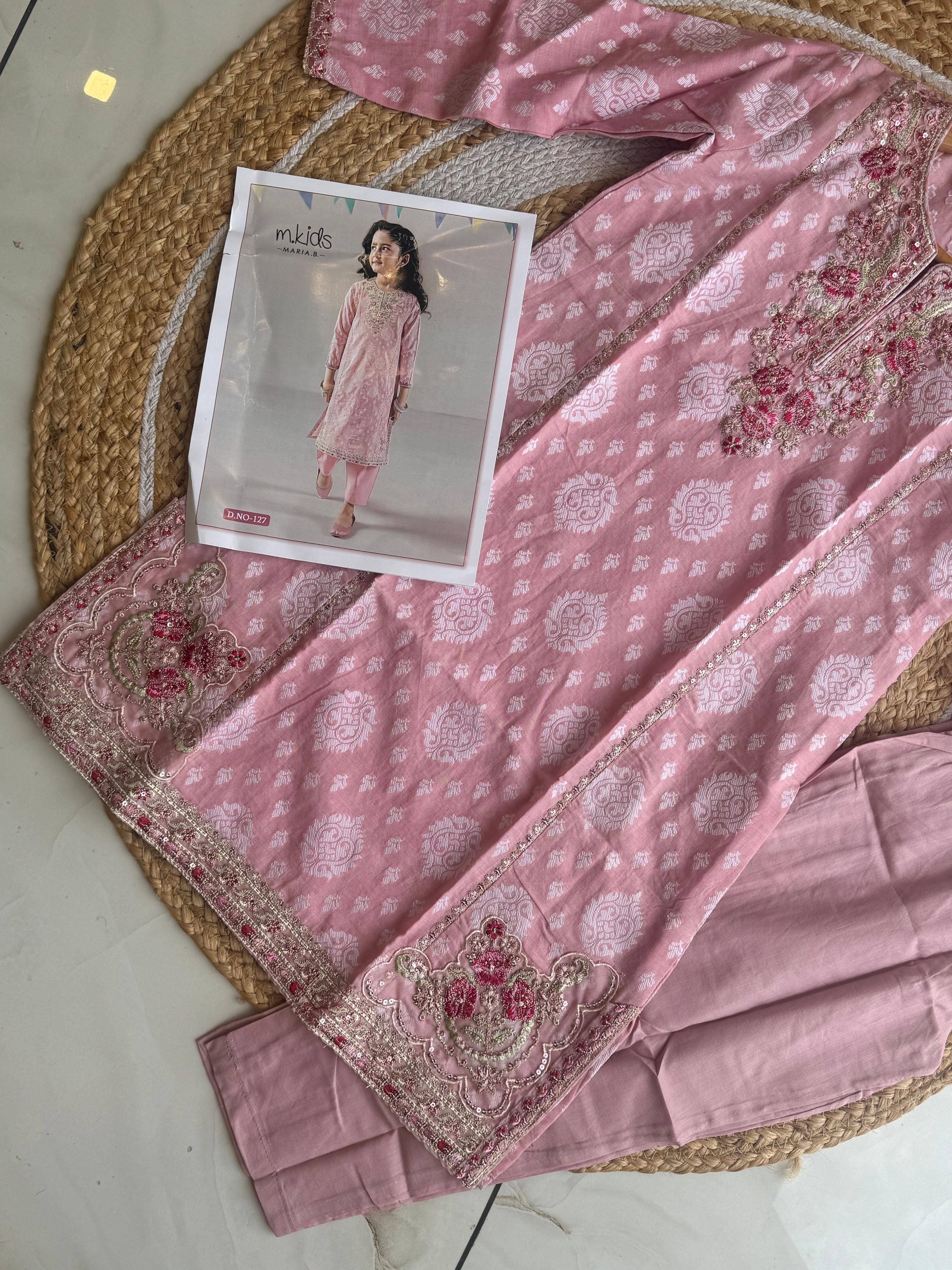 Type: Pakistani Kids Combo Suits Age: 4 To 16 Note: Multiple Size In One Colour Elegant blush pink party wear suit Soft, breathable fabric for all-day comfort Delicate embroidery for a graceful look Ready-to-wear design for hassle-free styling