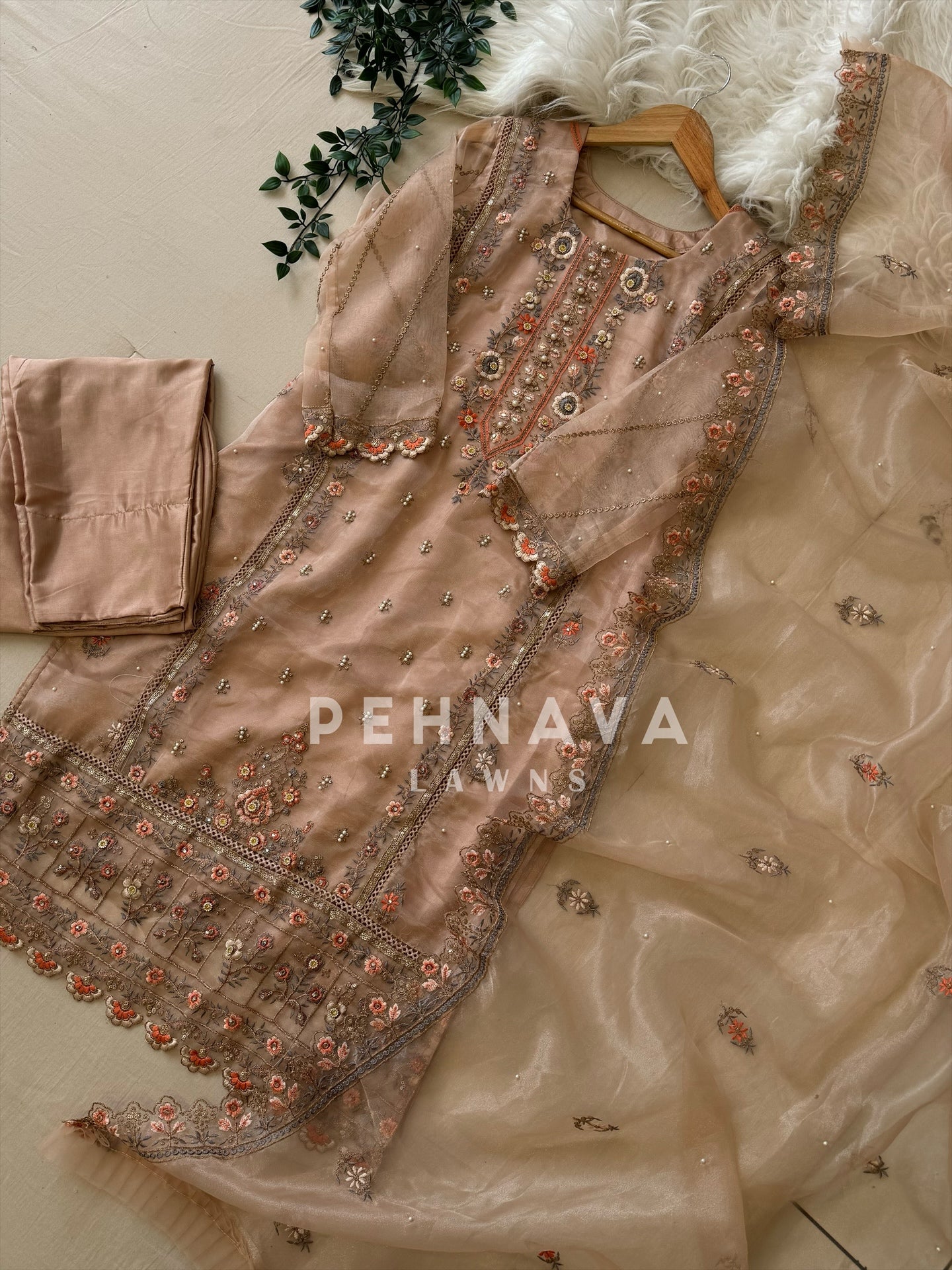 Type: unstitchedFabric: organza organza Dupatta with embroidery organza shirt with embroideryDyed Trouser  Sizes:can stitch upto 3xl
