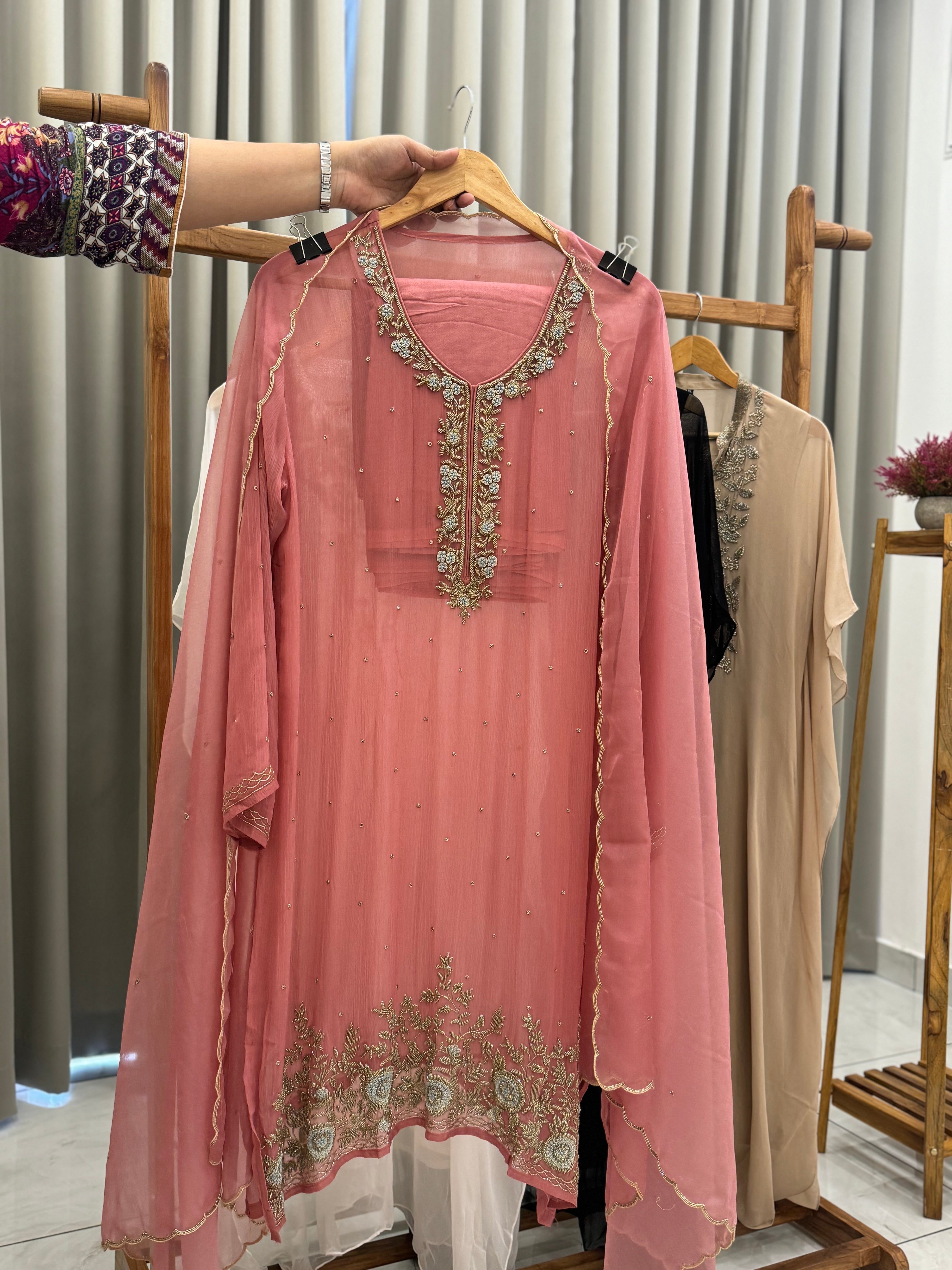 All orders for our handworked suits have an estimated shipping time of 15-20 days, adhering to our standard production timeline. For ready stock, we offer fast delivery, but once it's sold out, the standard 15-20 day processing time applies. To confirm delivery times, feel free to contact us via Instagram DM."