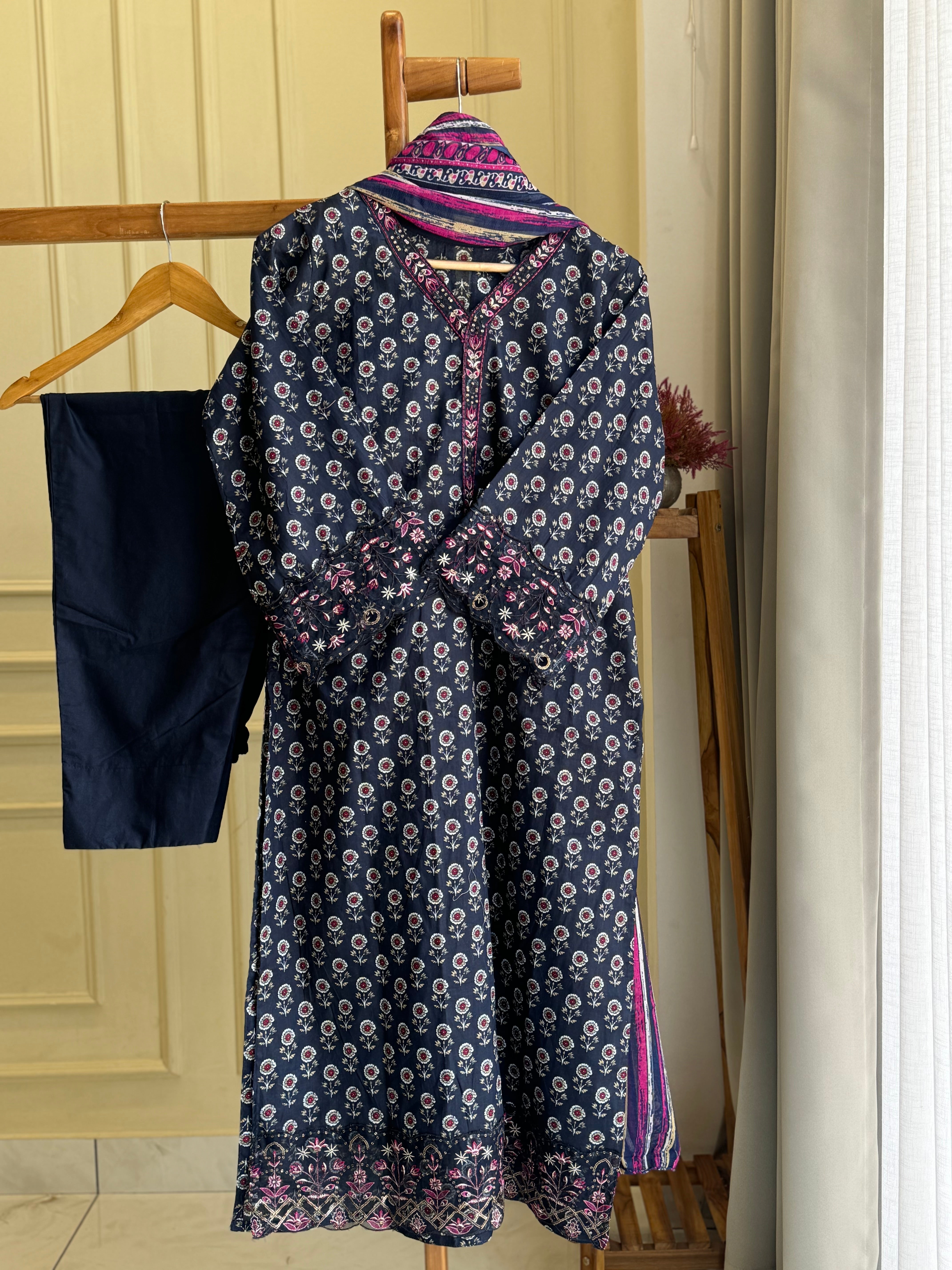 TOP - PURE COTTON PRINT ( 2.80 mtr ) WITH EXCLUSIVE EMBRODERY PATCH WITH ORIGNAL CUTWORK