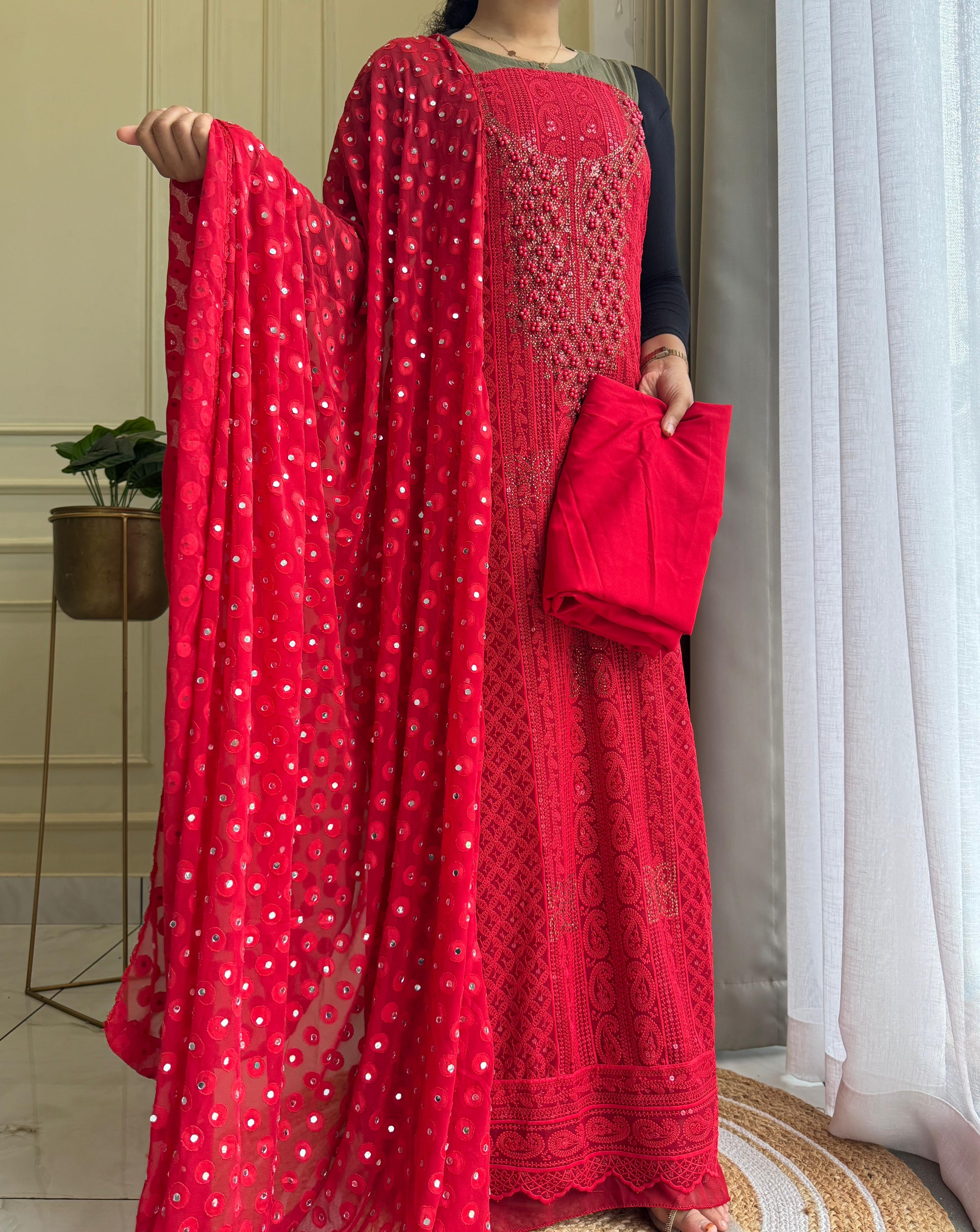 Work: Beautiful Chikankari Embroidery with Original mirror work